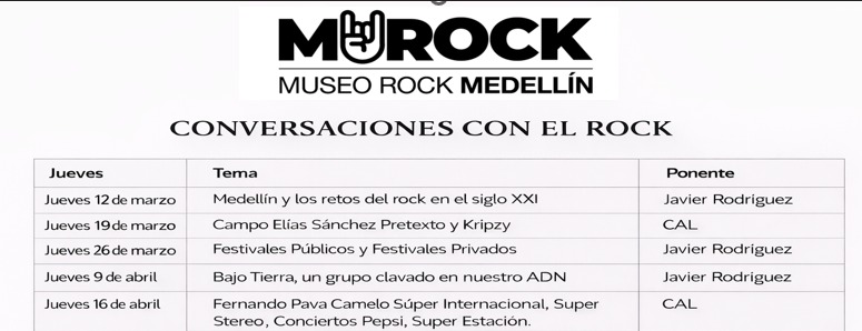 Como parte de su programación cultural, MUROCK desarrolla el ciclo “Conversaciones con el Rock”, una serie de encuentros con invitados que han sido protagonistas o analistas de la escena musical. Entre los temas que se abordarán están “Medellín y los retos del rock en el siglo XXI”, “Festivales públicos y festivales privados”, y “Bajo Tierra, un grupo clavado en nuestro ADN”.